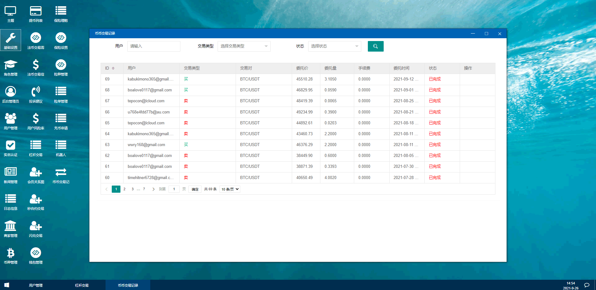 修复版BBANK交易所/多语言交易所平台/区块链交易所系统/四语言 交易所平台特色: 1、平台概况(实时行情、高端K线、合约交易、BI数据分析、币种统计、用户统计、交易统计、异常用户) 2、用户管理(用户密码修改、实名认证管理、银行信息管理) 3、钱包管理(用户钱包管理、资金调节、钱包日志、转入转出记录) 4、币种管理(币种的添加设置、提币账户管理、是否显示、交易对管理) 5、后台管理(平台数据管理、管理员权限、日志明细、系统参数设置)
