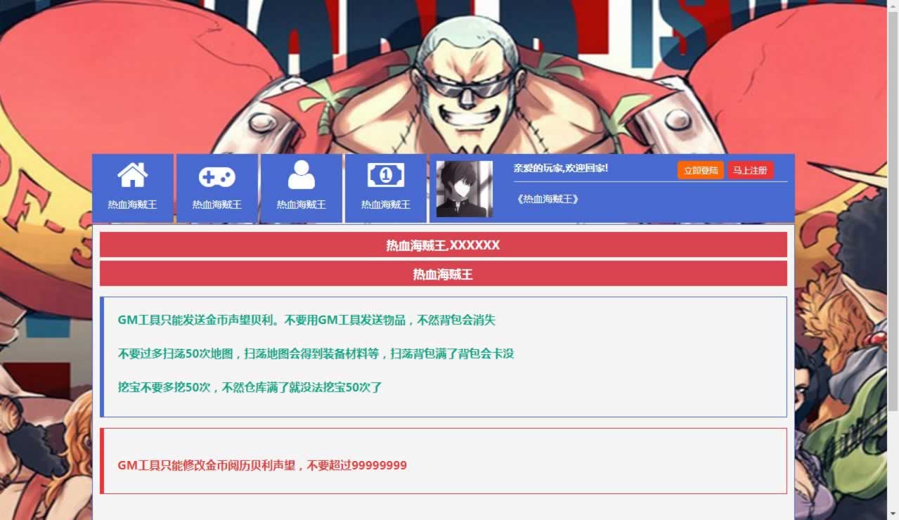 稀有回合页游【新版热血海贼王】2025最新整理单机一键即玩镜像端+Linux手工服务端+GM工具+全物品ID+详细外网搭建教程
